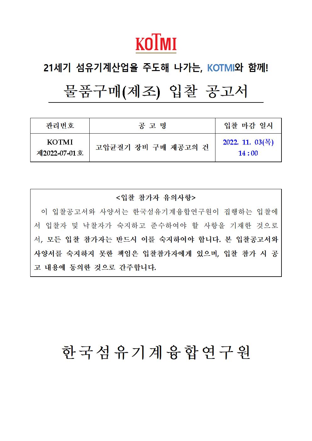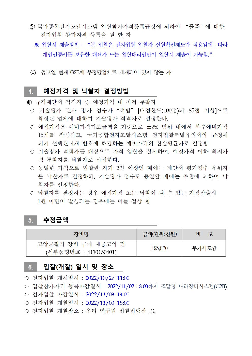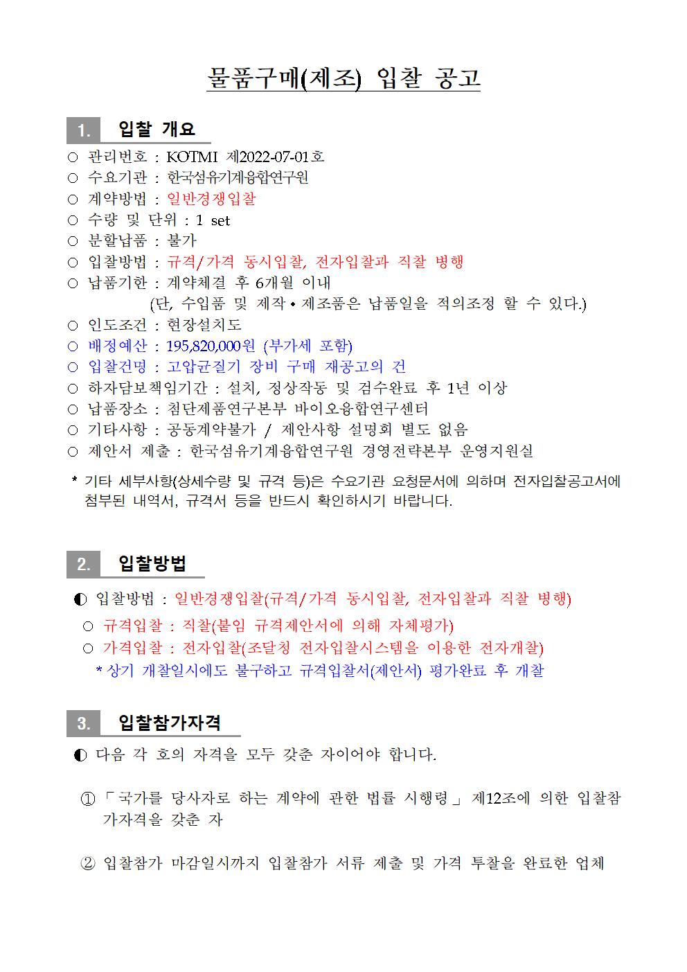 [재공고]고압균질기 장비 구매 재공고의 건