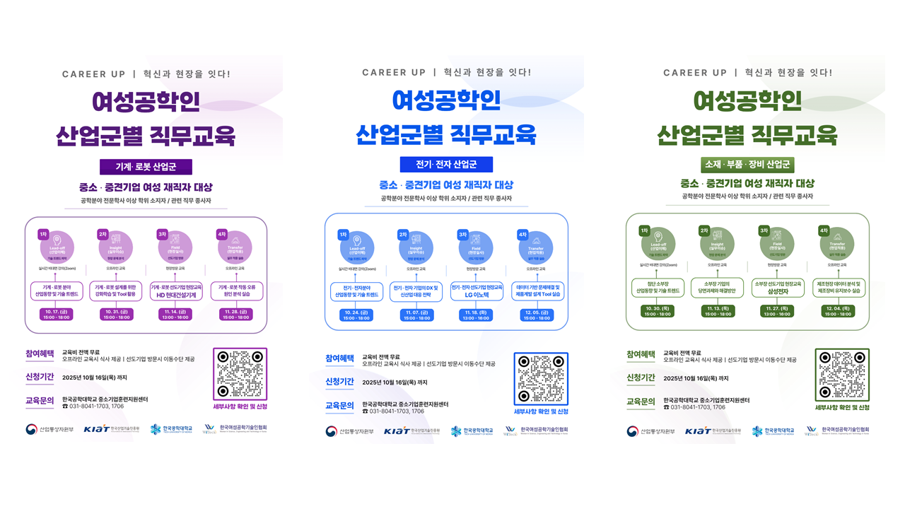 - 교육명: 여성공학인 산업군별 직무교육 'CAREER-UP, 혁신과 현장을 잇다.'